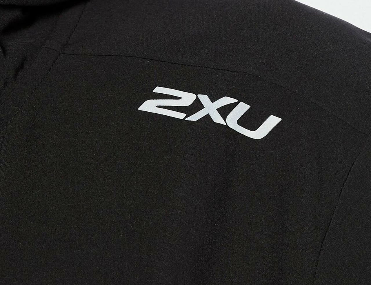 This black jacket has a prominent reflective silver band across the back, and the 2XU logo also picked out in silver. It’s also available in white with the logo in Poseidon blue.