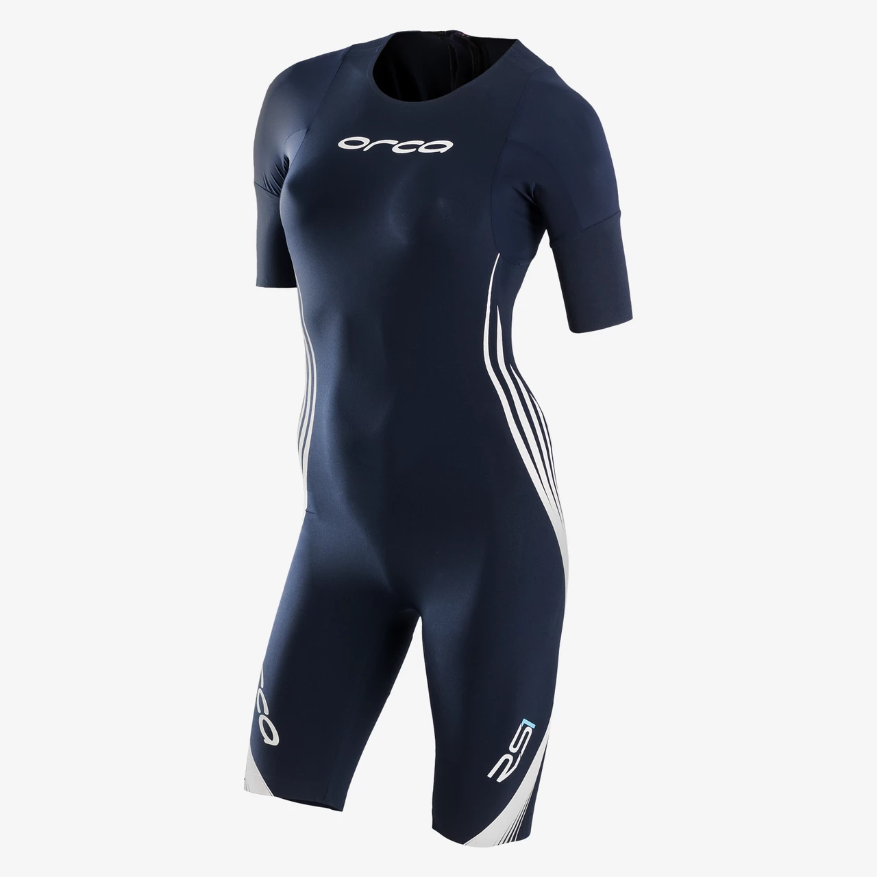 The completely waterproof material used for the Orca RS1 women’s sleeved swimskin won’t absorb water, but will minimise drag as you move through the water.