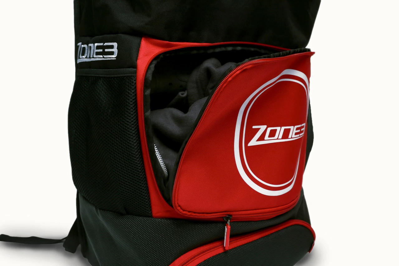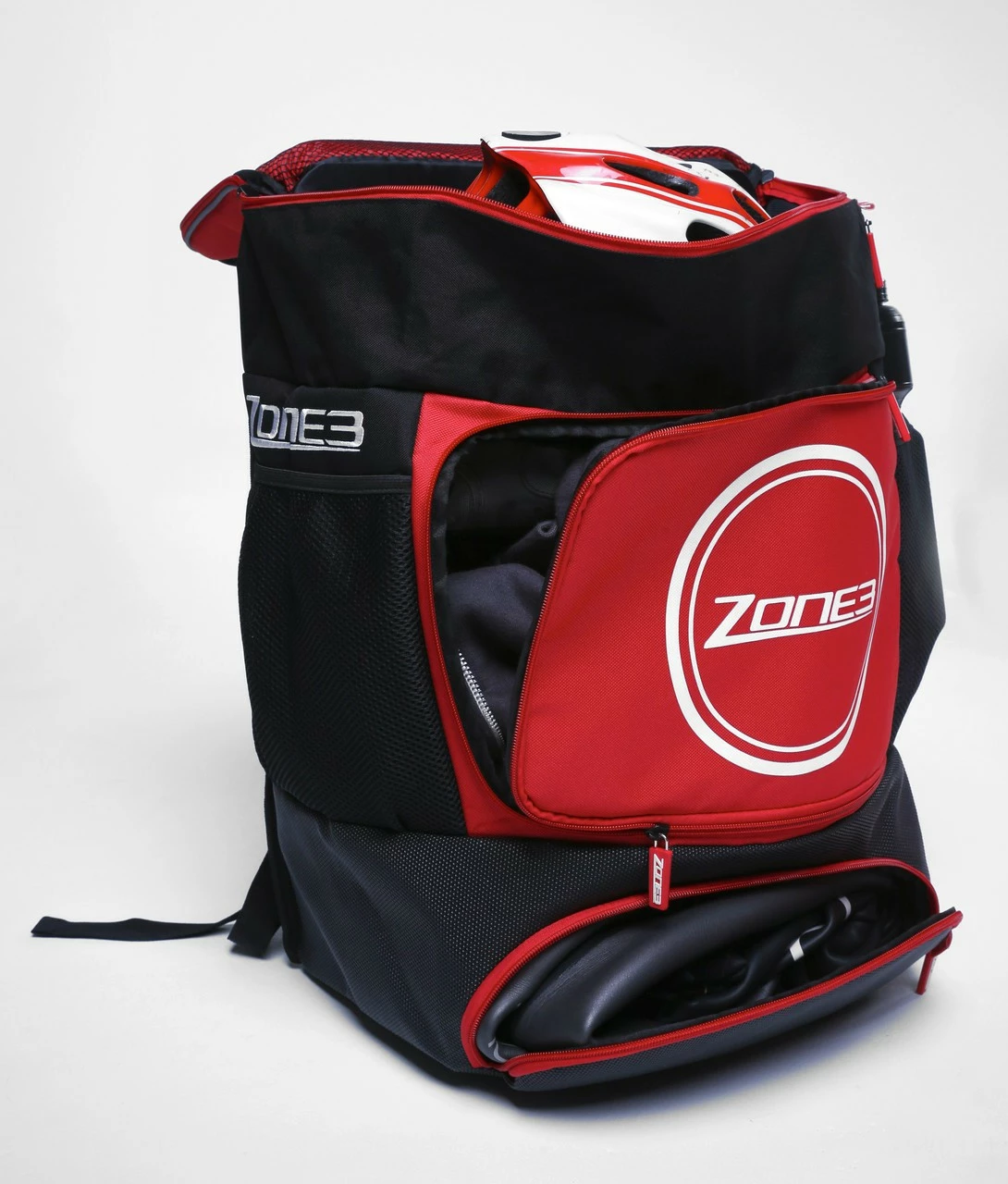The Zone3 Transition bag does everything you need without over complicating things. The bag measures 55cm x 35cm x 23cm which gives plenty of space for all of your kit including wetsuit, shoes, helmet, clothing and accessories. Not too big and not too small, we hope this is the perfect size transition backpack which is lightweight, functional and comfortable.